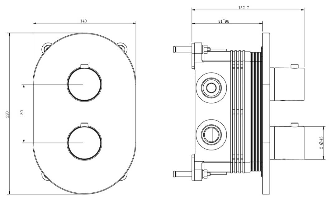 Composition : Mitigeur thermostatique, flexible 150 cm, douchette tube, support avec prise d'eau, bec de bain et ciel de pluie encastré.