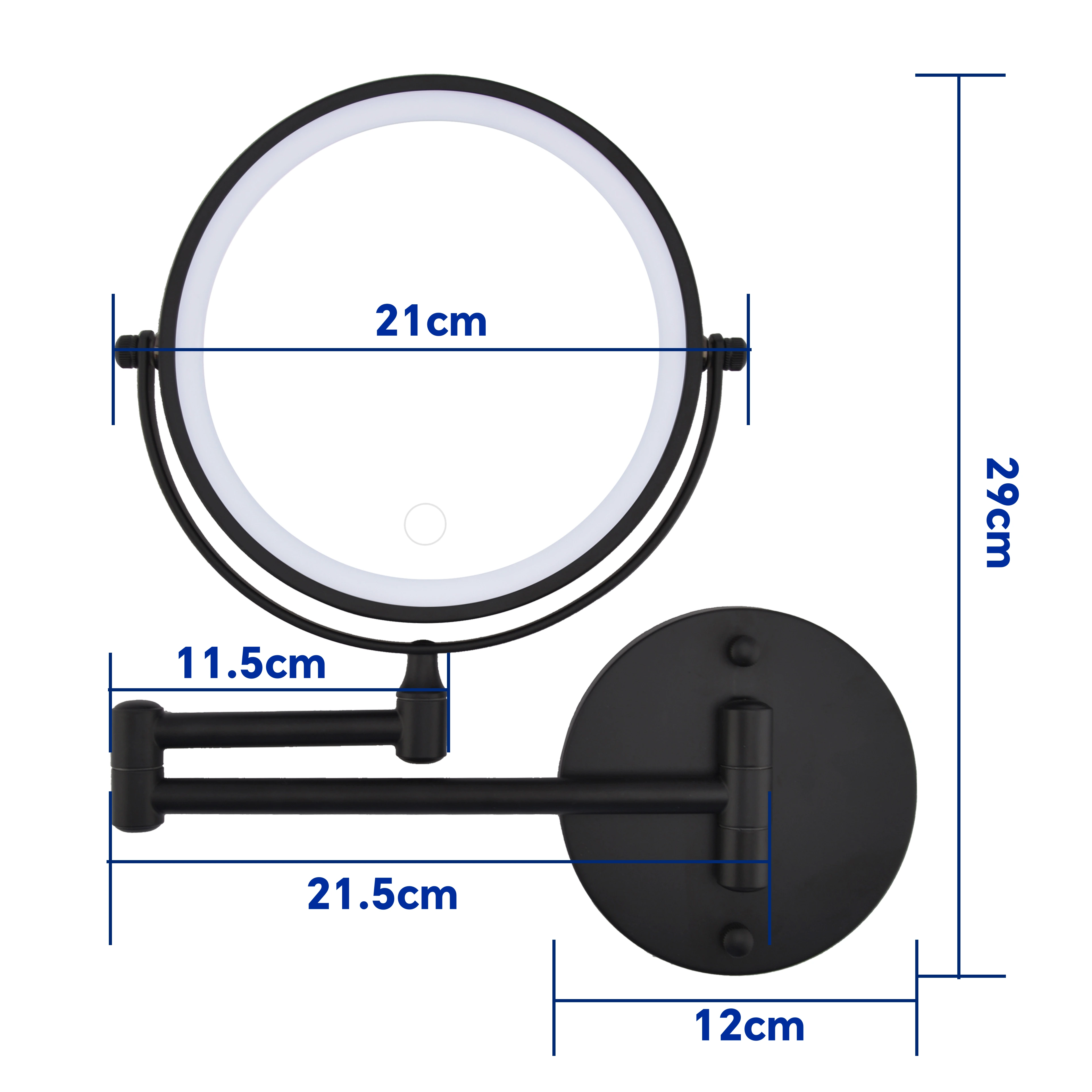 Le miroir mural Elena noir mat séduit par son design minimaliste et fonctionnel. Avec ses 2 faces (X1/X3), il s’adapte à toutes vos routines beauté. Son système LED rechargeable par USB offre un éclairage clair et sans fil encombrant. Facile à fixer grâce à son bras articulé, il pivote selon vos besoins. Sa finition noir mat apporte une touche contemporaine et raffinée à votre salle de bain.
