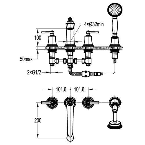 Le robinetterie de bain Liberty s'inspire du design rétro du fait de ses courbes des années 30. Ce produit de qualité est en laiton finition chromée, ce qui assure longévité à votre robinet. Sa pose se fait sur le bord de la baignoire, inclus sa douchette avec flexible.
