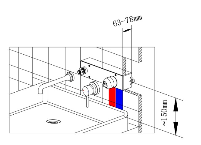 Robinet mitigeur lavabo mural encastré chromé, Bruma