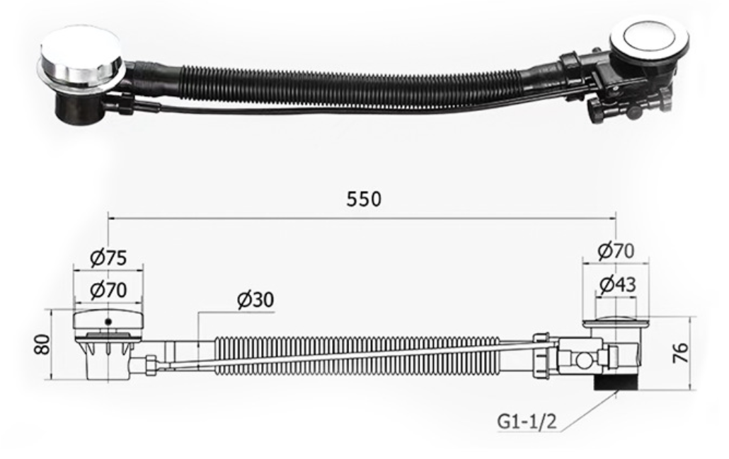 Vidage de baignoire universel pour baignoire de taille standard.