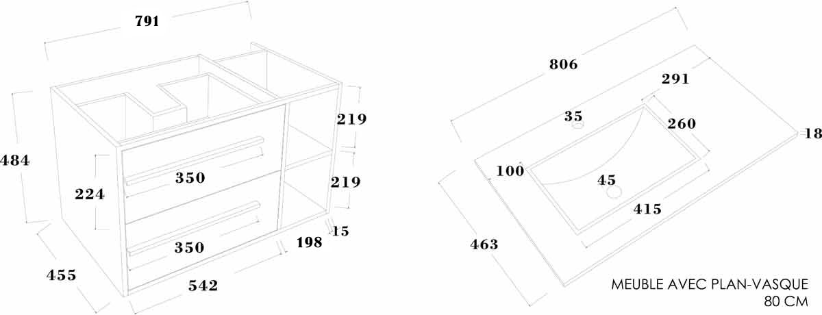 Meuble vasque suspendu blanc 80 cm