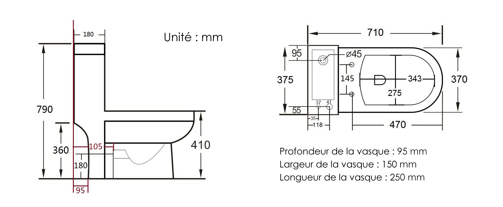 WC à poser avec lave-mains intégré et robinet inclus, Intégral