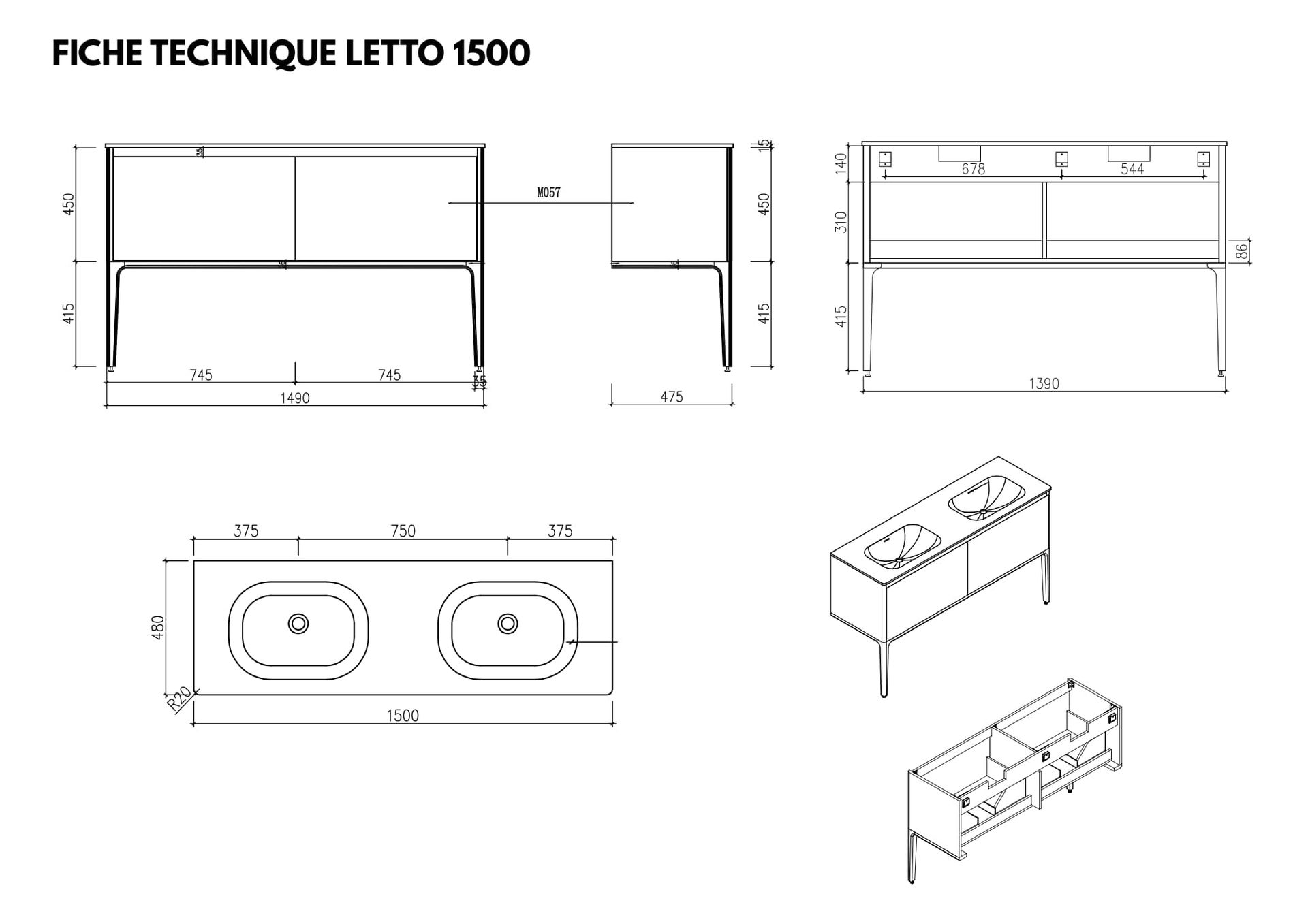 Alliez design contemporain et fonctionnalité avec le meuble de salle de bain Letto 150 cm. Son coloris Parme élégant, associé à ses pieds en noyer, lui confère une allure raffinée et chaleureuse. Doté de 2 tiroirs spacieux à fermeture douce, il offre une grande capacité de rangement. Sa vasque intégrée en résine minérale garantit résistance, durabilité et facilité d’entretien pour un usage quotidien optimal.