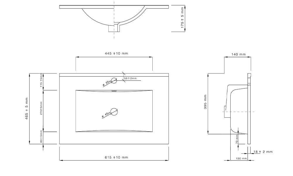 Ce meuble Caruso 60 ou 80 cm noir mat avec plan vasque en céramique antibactérienne est équipé d'un tiroir habilement découpé pour laisser le passage au siphon. Il est totalement intégré dans la façade et équipé de glissières à fermeture amortie "soft-close". La cuve dispose d'un trop-plein avec cache de finition chromé. Robinetterie, bonde et siphon à commander séparément.
