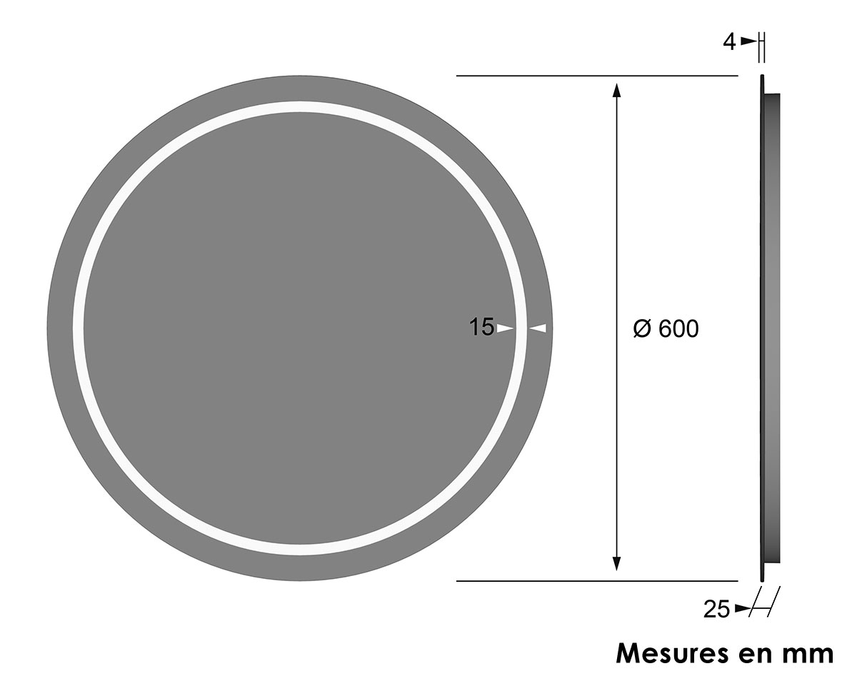 Miroir rond avec éclairage LED, Mallorca.