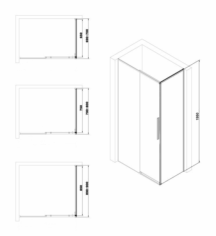 Paroi fixe pour combinaison avec les portes de douche coulissantes Arena. Verre securit transparent 6 mm avec traitement anticalcaire. Profilés en aluminium chromé. Hauteur 195 cm. Largeur : de 70 à 90 cm.