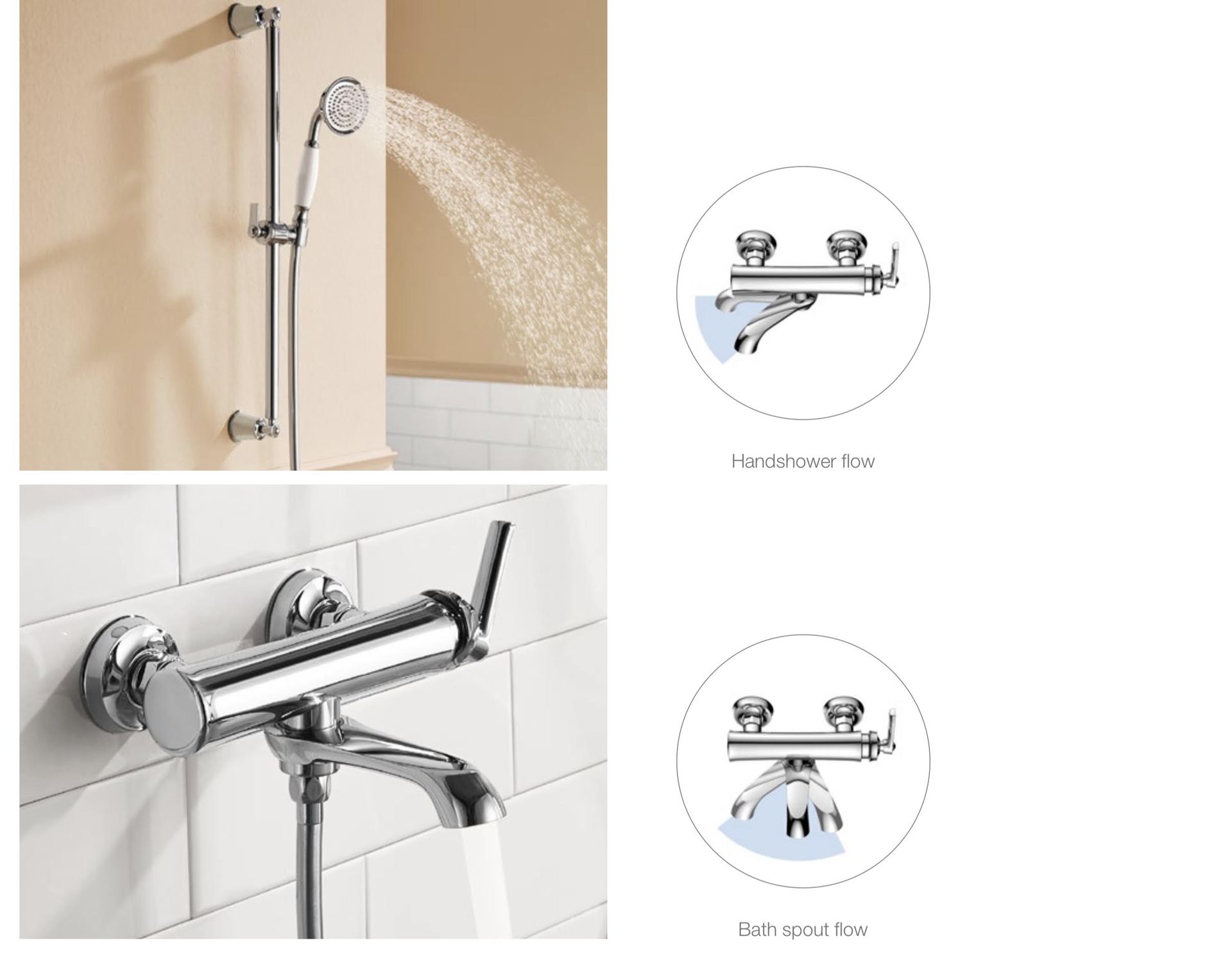 Le mitigeur bain-douche Liberty se caractérise par son design rétro inspiré des années 30. Cette robinetterie est d'une garantie de qualité : corps en laiton, finition chromé. Set de douche comprenant une douchette, un crochet mural et un flexible PVC de 150 cm inclus.