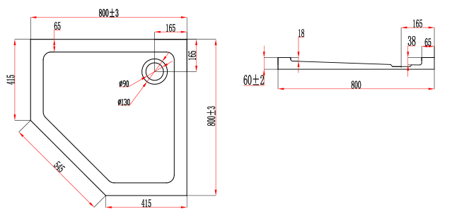 Receveur de douche pentagonal en acrylique blanc, Bora.