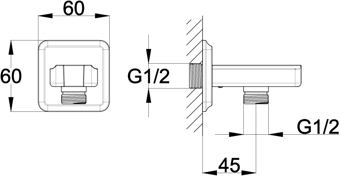 Support douchette carré et prise d'eau.