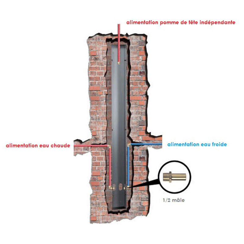 Silk, panneau de douche encastré hydromassant et leds, thermostatique, acier inoxydable
