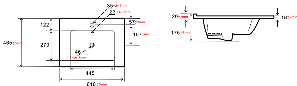 Garantie 2 ans. Nous vous recommandons de ne pas percer le plan avant d'avoir la vasque, une légère variation des dimensions peut avoir lieu d'un modèle à un autre (+/- 5mm).