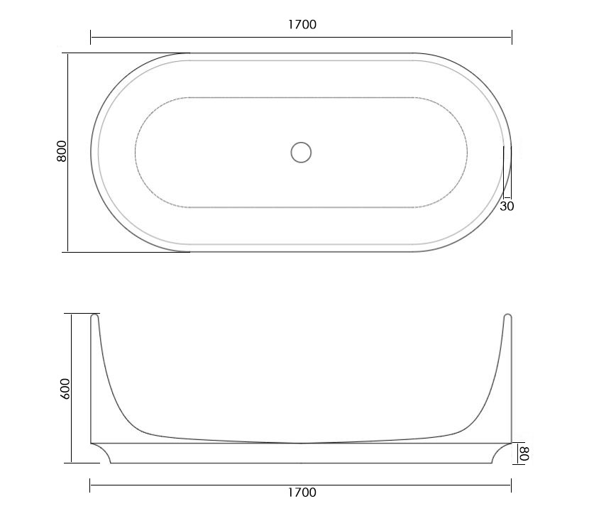 Baignoire îlot oblongue 170x80x60 en pierre naturelle Travertin beige – Caïques