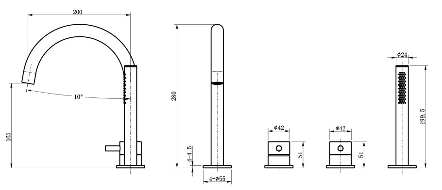 Le mitigeur bain-douche de plage Châtelet en acier inoxydable finition noir brossé allie finesse et lignes épurées. Ce robinet au design indémodable s'intègre dans une salle de bain contemporaine ou classique avec ses lignes courbes élégantes. La finition noire apporte par son côté brossé une touche de modernité supplémentaire à ce modèle de robinetterie. Le robinet 4 trous Châtelet est complet, avec flexible, douchette et bec de bain. Garantie 5 ans.