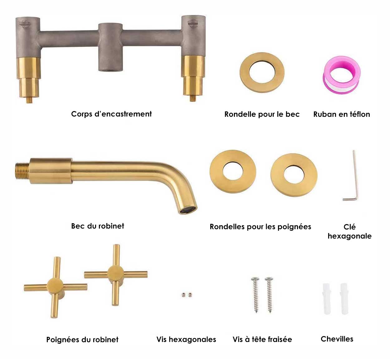 Le mélangeur lavabo Châtelet encastré en inox doré brossé allie finesse et lignes épurées. Ce robinet au design intemporel s'intègre dans une salle de bains classique ou contemporaine avec ses lignes courbes élégantes. La finition dorée brossée et ses croisillons apportent une touche de raffinement supplémentaire à ce modèle de robinetterie. Le robinet Châtelet est fourni avec une cartouche céramique.