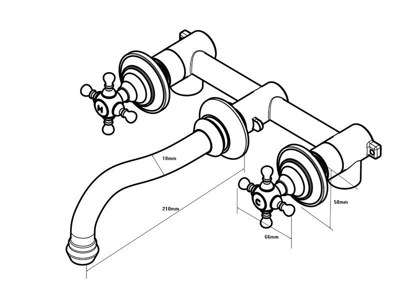 Robinet mélangeur lavabo mural 3 trous, chromé, Diana 2.