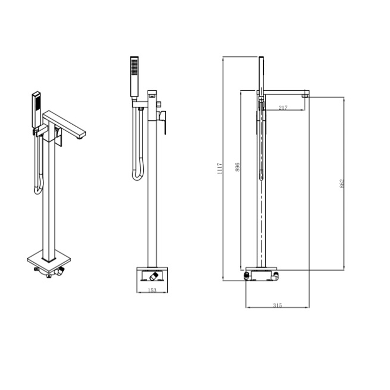 Robinet mitigeur de baignoire sur pied, chromé, Tuileries.