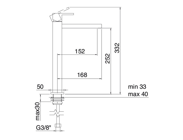 Robinet mitigeur lavabo surélevé carré nickel brossé, "Q" bec 252 mm