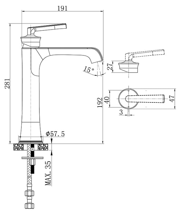 Robinet mitigeur lavabo surélevé Art Déco