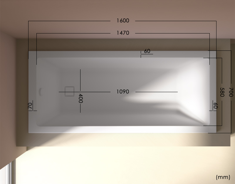 Baignoire encastrable Lavezzi 160x70 cm en acrylique blanc mat avec pieds et vidage carré