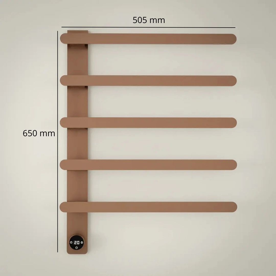 Apportez une touche sophistiquée à votre salle de bain avec le sèche-serviettes électrique Solar 90W en finition doré rose brossé. Son format vertical compact (50,5 x 65 x 8,4 cm) offre une excellente capacité de séchage tout en conservant un design élégant et contemporain.
