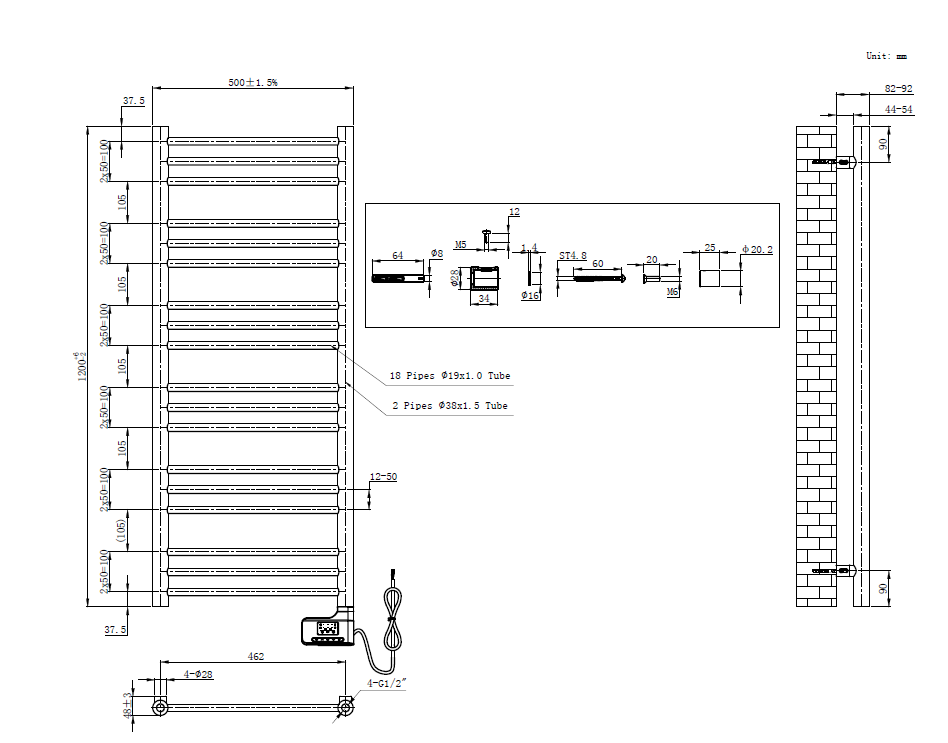Dimensions 120 X 50 cm. Puissance 500W. Disponible en plusieurs coloris.
