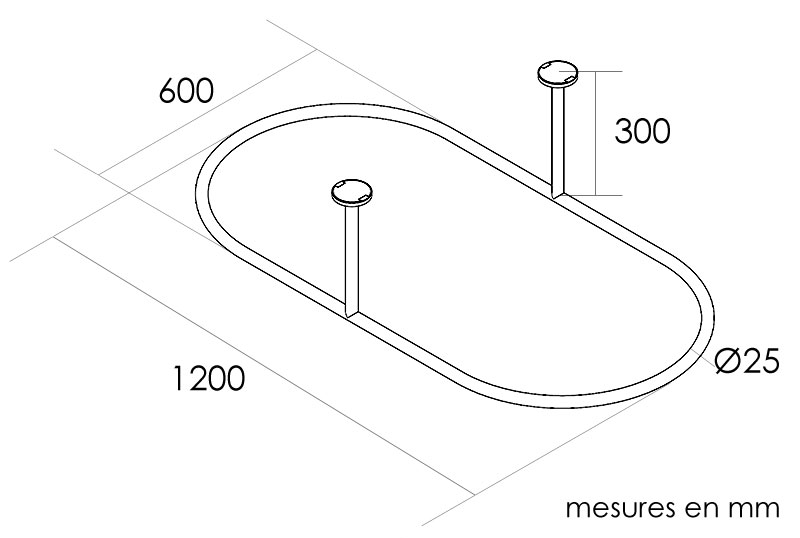 Barre ovale 120x60 cm, pour rideau, chromé