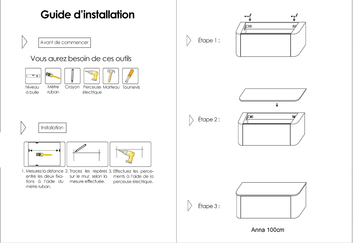 Meuble suspendu salle de bain, 100 cm, Anna