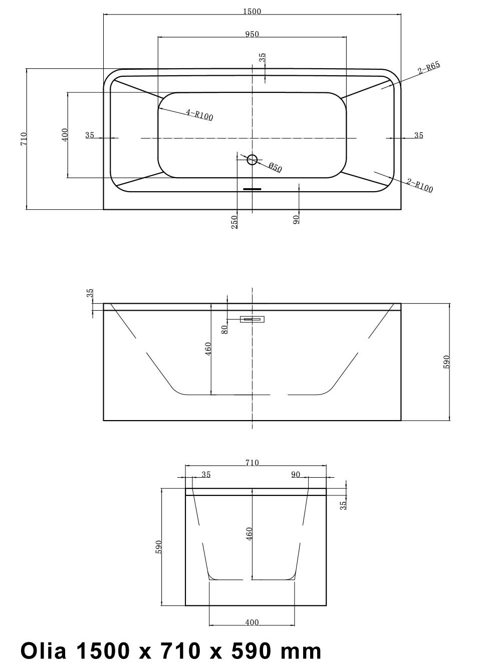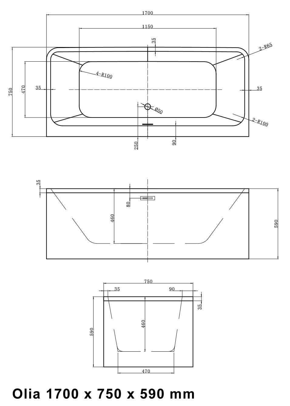 La baignoire Olia est un modèle en îlot ou à adosser contre un mur. Son design minimaliste et sa forme rectangulaire apportent de la modernité à votre salle de bain. Le cache trop plein blanc mat vous laisse libre de choisir la couleur de votre robinetterie. Pieds et bonde inclus. Robinet de bain et siphon à commander séparément.