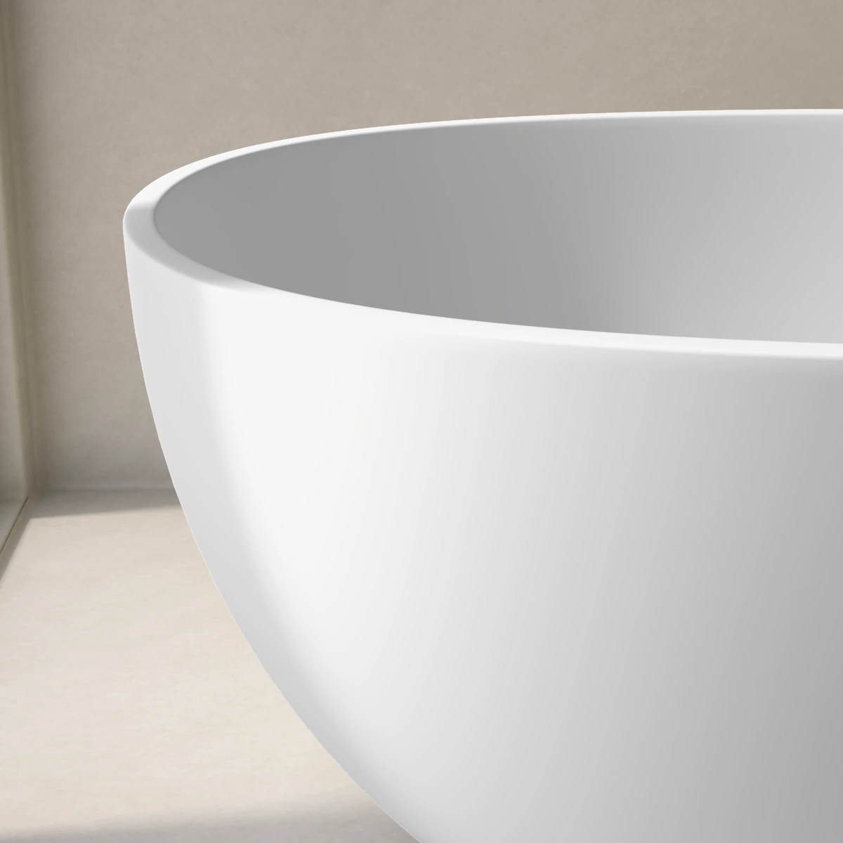 Cette Baignoire îlot est réalisée en composite minéral, Solid Surface. Ce dernier est fait à 70% de Quartz, procurant un toucher velouté exceptionnel qui contribuera à votre sensation de bien-être. Facile d'entretien, la baignoire solid surface dispose d'un système de trop-plein inclus dans sa coque.