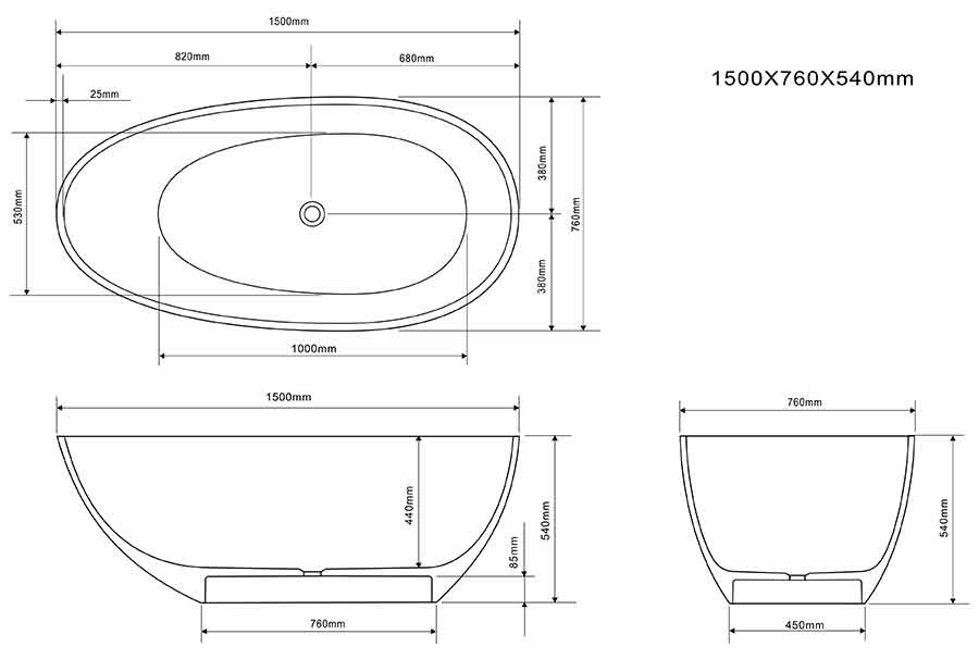 Bonde incluse. Disponibles en 150x76 cm, 170x88 cm. Robinet de bain et siphon à commander séparément.