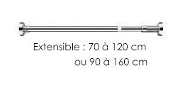 Barre extensible 70 à 120 ou 90 à 160 cm, droite, pour rideau de douche, chrome