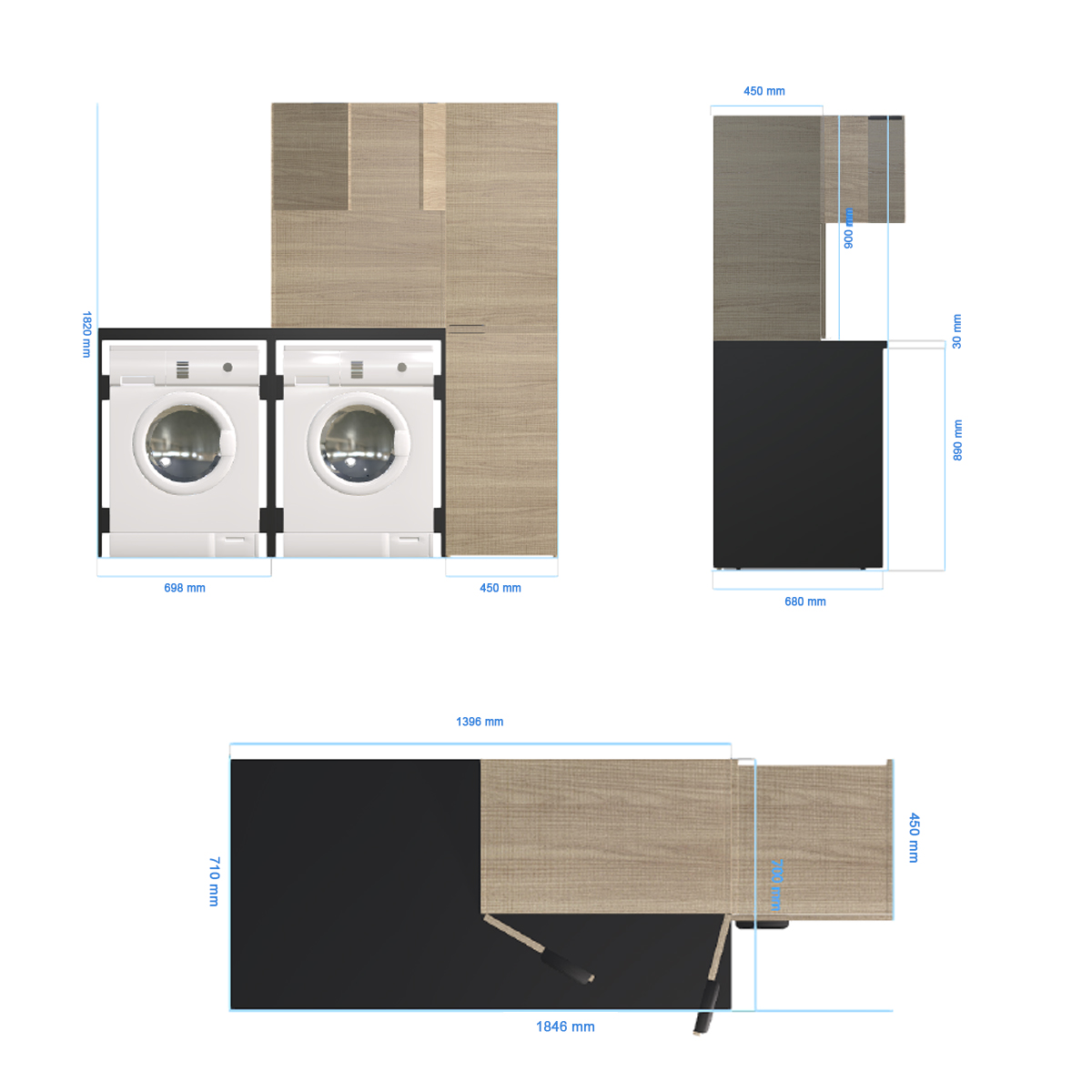Ensemble meuble buanderie, compo M6.0, 185 cm