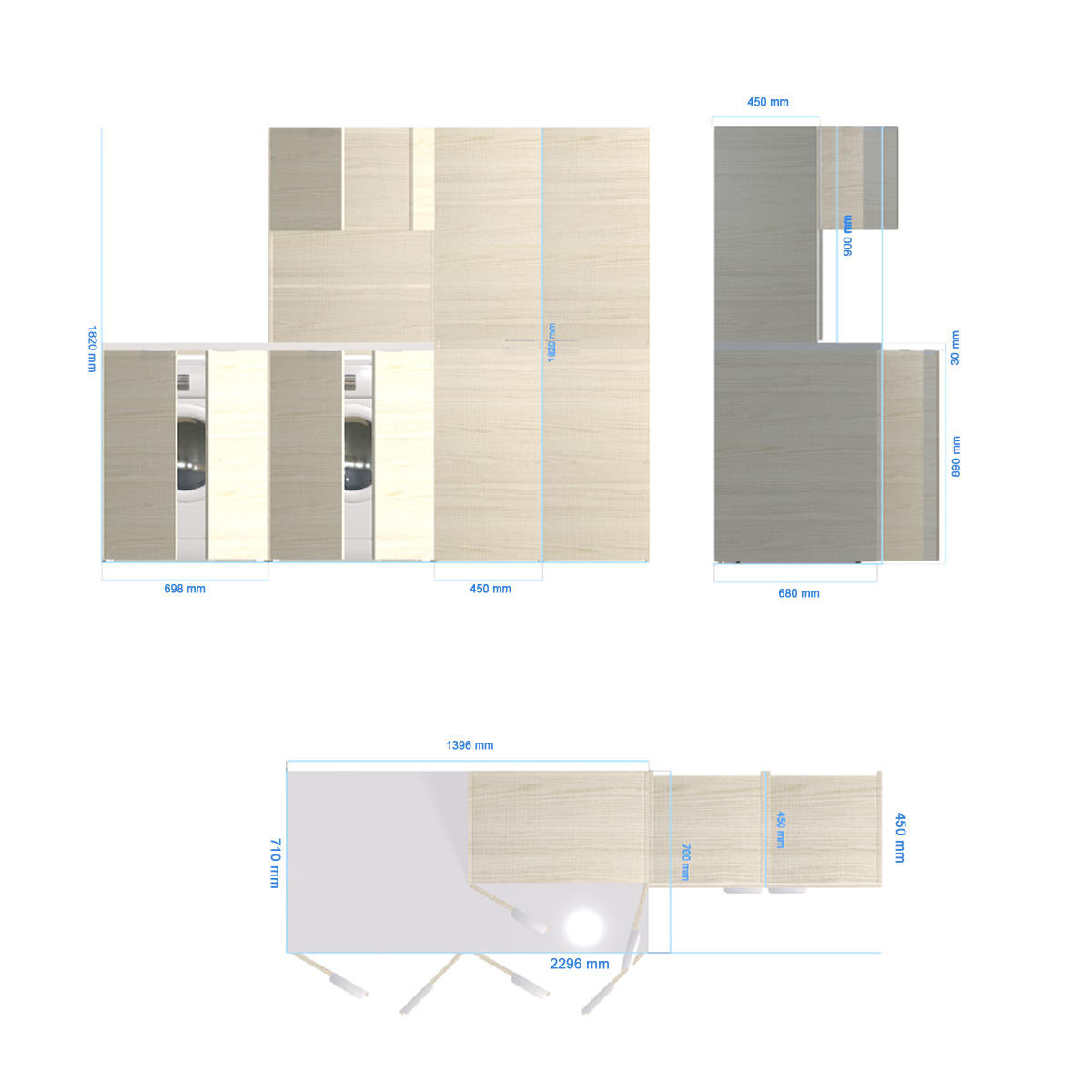 Cet ensemble meuble buanderie est conçu pour allier fonctionnalité et esthétique dans votre salle de bain;