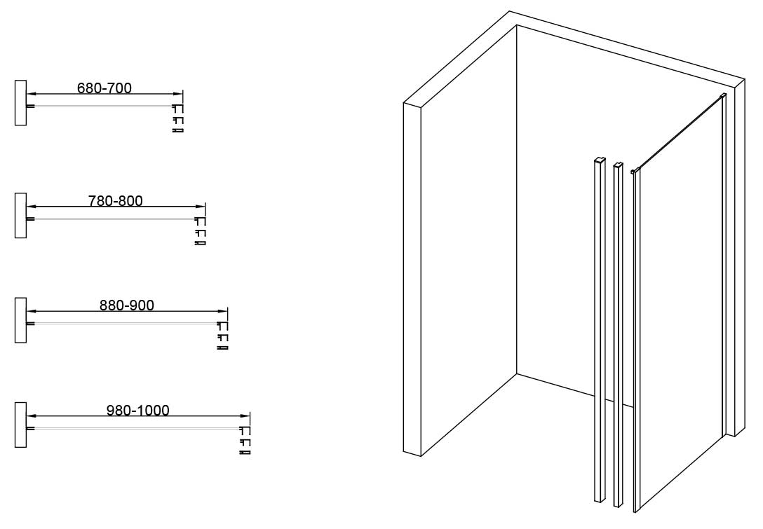 Vos dimensions sont hors normes? La cabine de douche pivotante et fixe est la solution “sur mesure” idéale. Les profilés de compensation dorés brossés s’accorderont parfaitement avec la robinetterie de notre collection Châtelet. Verre trempé Securit de 6 mm et traitement anti-calcaire. Dimensions : Portes de  93 à 165,4 cm. Retour fixe 70, 80, 90, 100cm