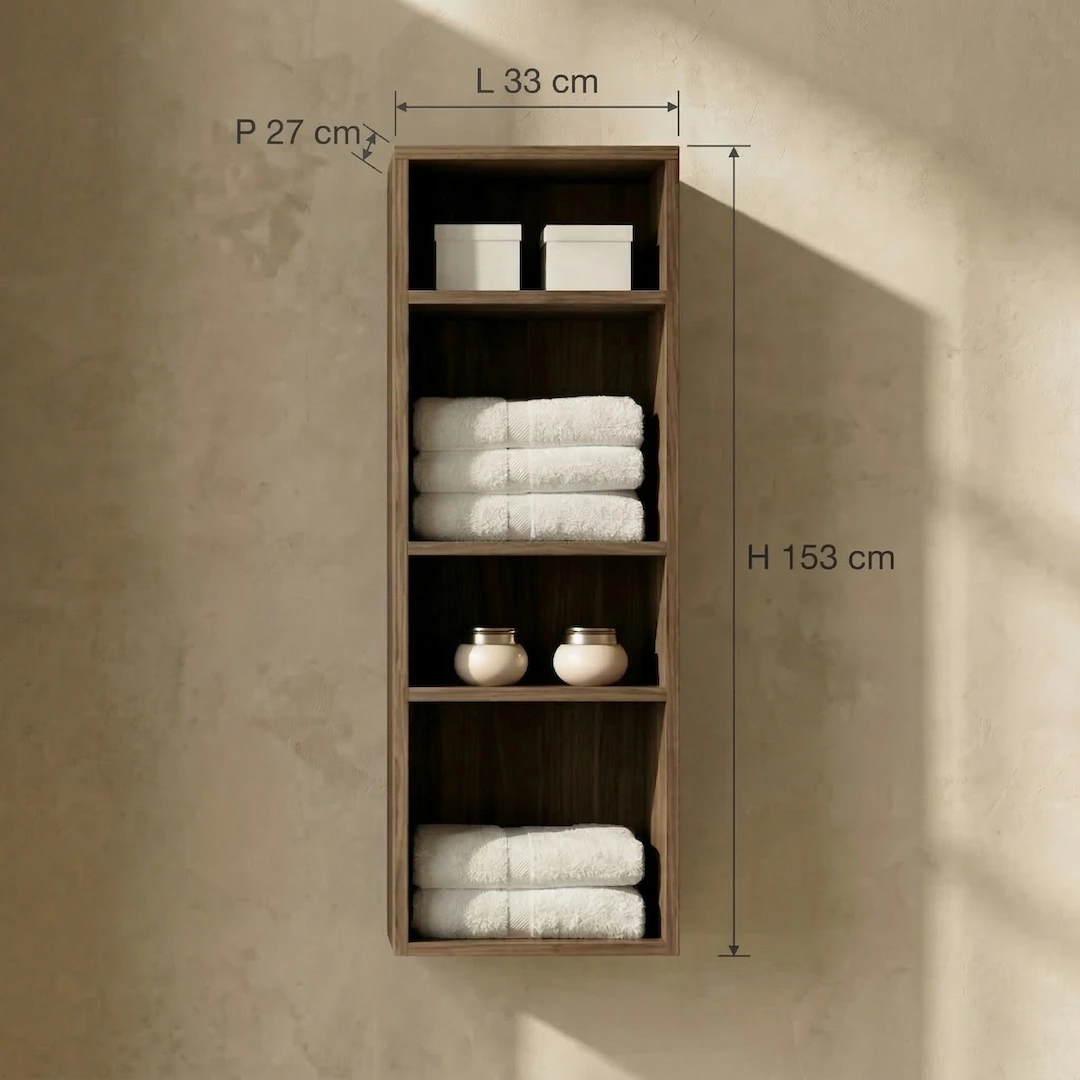 Colonne de rangement de salle de bain suspendu 153x33 cm, ouverte.