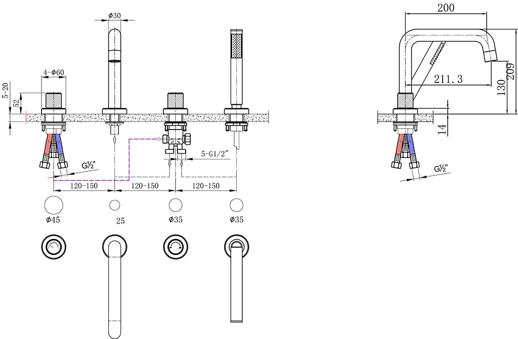 Alliez caractère et fonctionnalité avec le robinet mitigeur bain-douche sur gorge Bruma en finition Gun métal. Idéal pour les baignoires à plage, ce robinet se distingue par une silhouette moderne et robuste, soulignée par une finition PVD très résistante. Le mitigeur permet une gestion fluide du débit et de la température, tandis que le bec de bain et la douchette assurent une utilisation confortable. Un choix audacieux pour une salle de bain contemporaine.