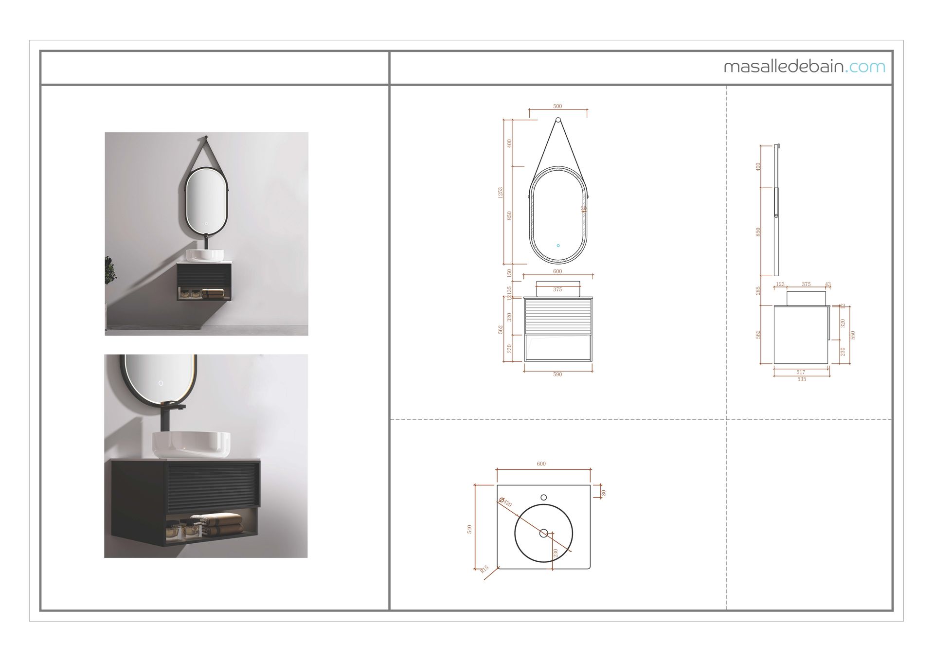 L’ensemble Minions en finition noir mat affirme un caractère moderne et sophistiqué. Il associe un meuble compact à plan Carrara, une vasque en céramique blanc brillant et un miroir LED 50x35 cm au cadre noir mat avec fonction anti-buée. Un design structuré et minimaliste, parfait pour optimiser l’espace sans compromettre l’esthétique.