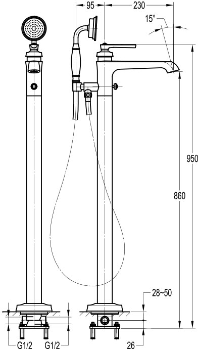 Robinet mitigeur de bain au sol, traité cuivre, Liberty.