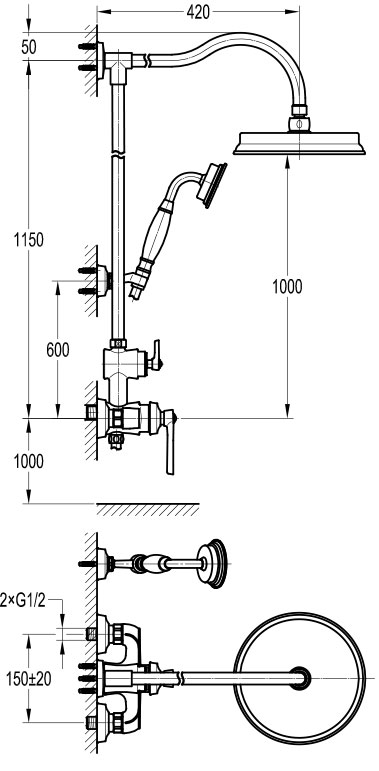 Colonne de douche avec mitigeur mécanique, traité cuivre, Liberty.