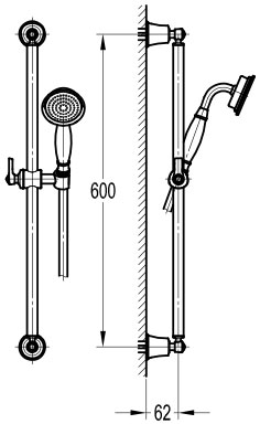 Set de douche à main Liberty en laiton et finiton traitée cuivre comprenant une douchette, une barre avec support de douchette mural et un flexible PVC de 150 cm.