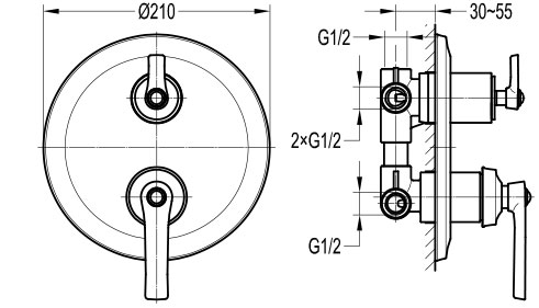 Robinet mitigeur douche mural, Liberty (3 sorties)