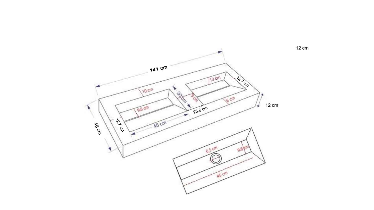 Conçu pour une installation suspendue, ce plan vasque allie fonctionnalité partagée et élégance intemporelle, parfait pour les salles de bain d’inspiration architecturale ou hôtelière.