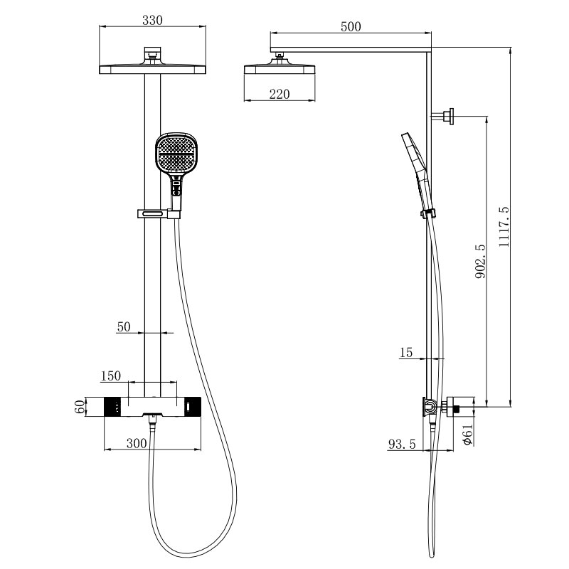 Cette colonne de douche, Concorde, est réalisée en laiton de haute qualité. Ses formes épurées et sa finition or mat en font l'équipement idéal d'une salle de bains de style industriel. La douchette, le support et le flexible en PVC or mat sont inclus.