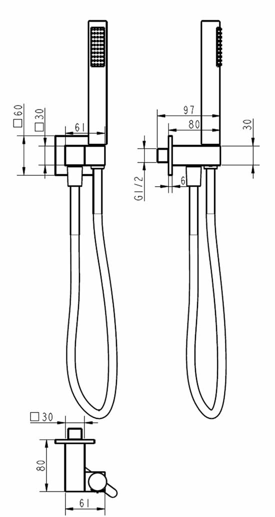 Cet ensemble complet comprend : le flexible de douche, une douchette à main tube et un support prise d'eau. Entretien facilité grâce aux buses en silicone pour éliminer le calcaire rapidement. Également disponible en noir mat ou en blanc. Pour solution de douche à encastrer. Flexible en PVC de 1,5 m inclus.