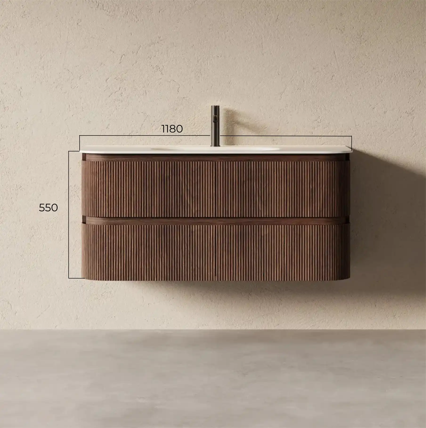 Le modèle Alix 120 cm est l'expression ultime du luxe organique pour les salles de bains spacieuses. Sa finition Noyer apporte une présence chaleureuse et sophistiquée, mettant magnifiquement en relief sa façade en frêne massif cannelé. Ses courbes douces et ses angles arrondis créent un design fluide qui apaise l'espace tout en affirmant un caractère fort et intemporel. Conçu pour durer, ce meuble associe la noblesse du frêne massif à un contreplaqué de grade E1 hydrofuge, offrant une résistance exceptionnelle à l'humidité. L'imposant plan vasque de 120 cm en résine minérale blanc mat offre une surface de dépose généreuse et un entretien facilité grâce à ses propriétés antibactériennes.