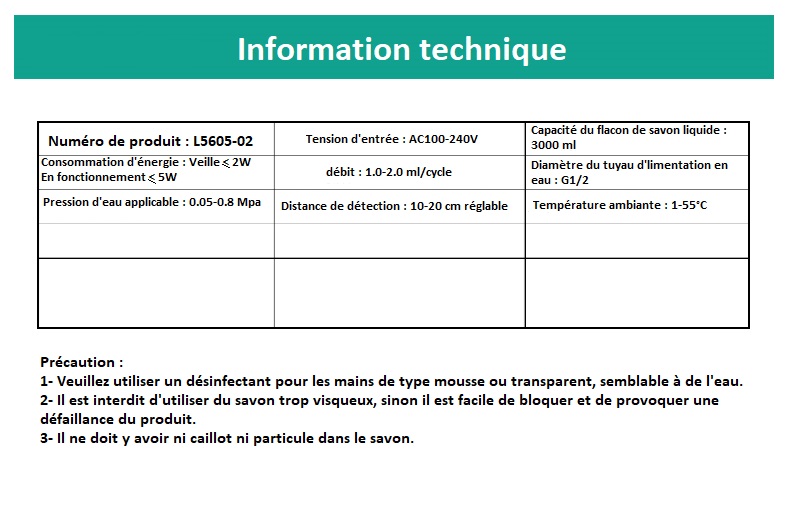 Explorez notre robinet électronique de pointe, intégrant un distributeur de savon pour une expérience de salle de bains moderne. Grâce à sa distribution automatique de savon, il assure une utilisation mains-libres pratique, favorisant l'hygiène. De plus, il est disponible en trois coloris pour s'adapter à votre style. Optez pour la simplicité et l'innovation dans votre salle de bains contemporaine avec notre mitigeur électronique.