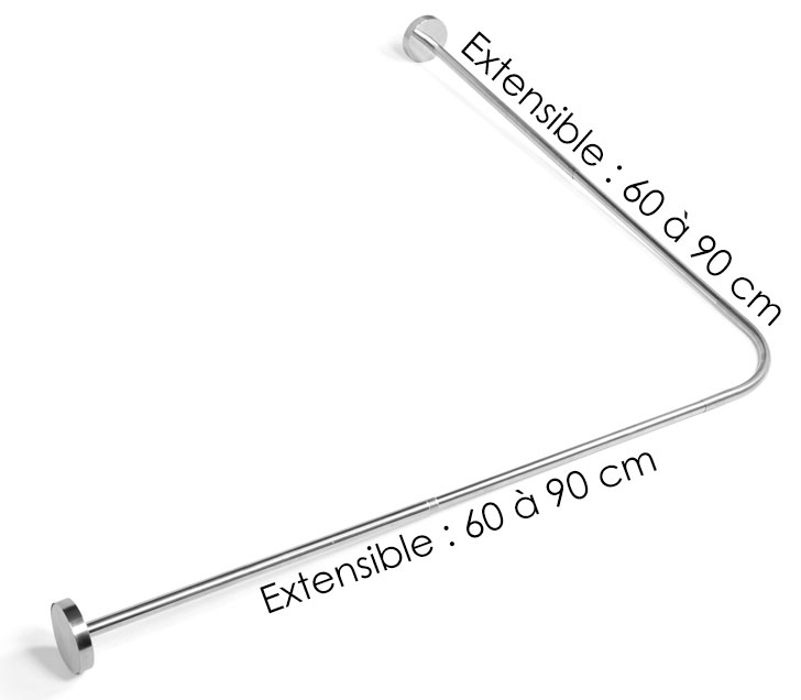 Barre extensible 60x60 à 90x90 cm, en angle, pour rideau de douche, chrome