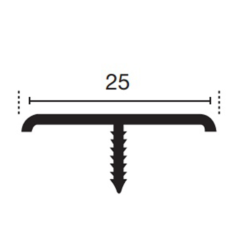 Profilé aluminium de jonction en T, finition aluminium argent brillant. Largeur 25mm . Baguette de finition pour jonction entre 2 carrelages ou entre parquet et carrelage de même hauteur. Idéal en seuil de porte ou pour recouvrir une coupe. En 250cm de longueur.