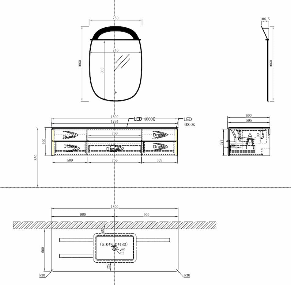 Transformez votre salle de bain avec l’ensemble Onyx, alliant un meuble vasque suspendu en bois fumé à un plan en marbre véritable de 180x60 cm. La vasque encastrée en céramique assure une finition épurée, tandis que le miroir LED à cadre bois (75x106 cm) diffuse une lumière douce et élégante. Ce mobilier contemporain séduit par ses matériaux nobles et son design intemporel, idéal pour créer un espace à la fois chaleureux et sophistiqué.